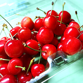 甘いサクランボ、ブドウ、安心安全な野菜たちを